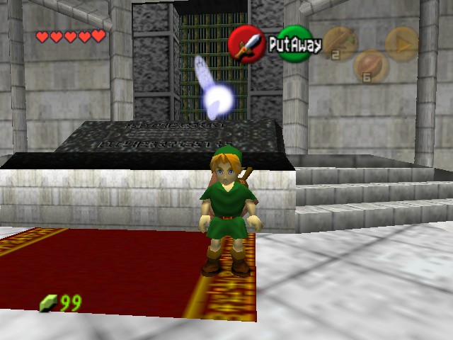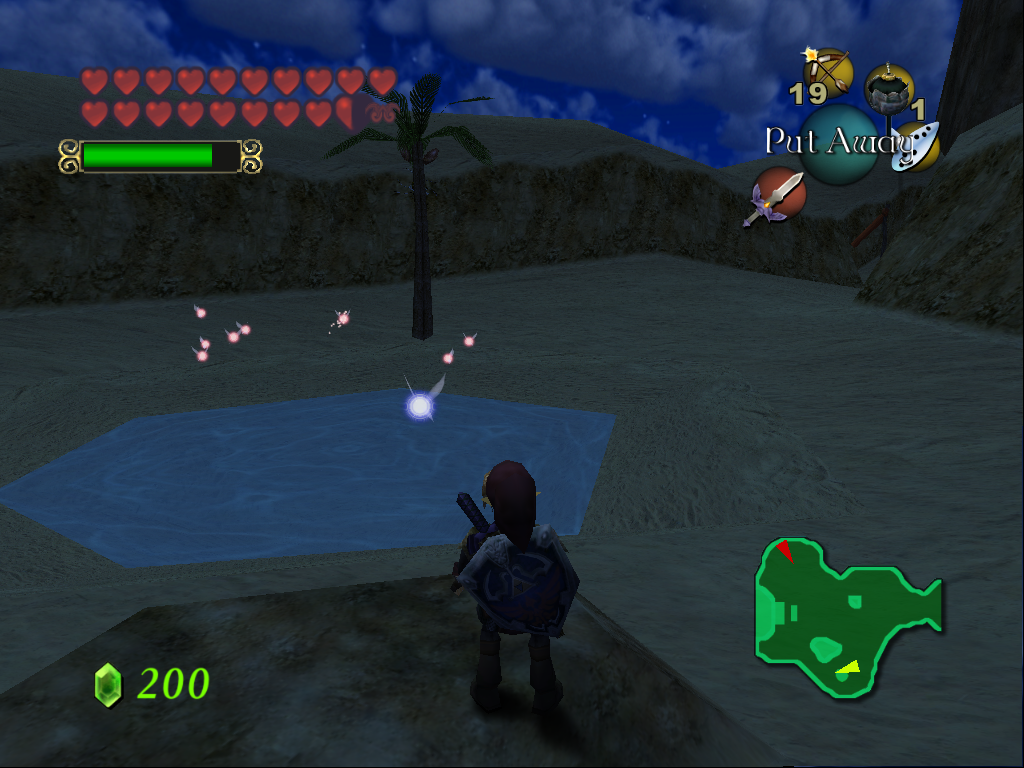 la restauration de la Prerelease d'Ocarina of Time, incluant donc la Fée Bleue, la Fontaine des Licornes, l'attaque Blade Beam,
